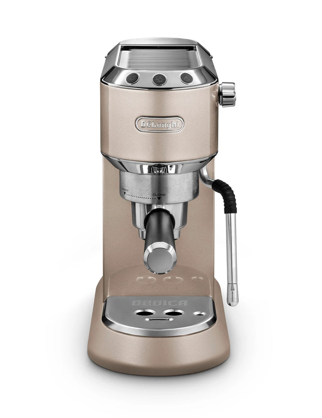 Enjoy barista style Italian coffee in the comfort of your own home with the Dedica Arte manual espresso machine. This machine brews a wide range of coffee and milk based beverages using your favourite blend of beans. Achieve a rich, intense espresso or a deliciously creamy milk texture for creamy cappuccinos or lattes. You'll love the compact design and sleek beige finish of this stylish and easy-to-use coffee machine.