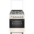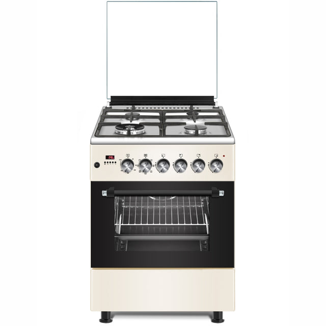 4 Burner + Wok, Heated Oven Fan, FFD, Integrated Ignition, Turnspit, Lamp, Digital Timer, Cast Iron, Glass Lid, Stainless Steel Top Cream Body