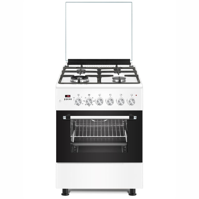 Burner + Wok, Heated Oven Fan, FFD, Integrated Ignition, Turnspit, Lamp, Digital Timer, Cast Iron, Glass Lid, Stainless Steel Top White Body